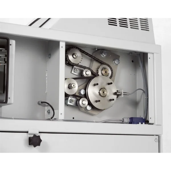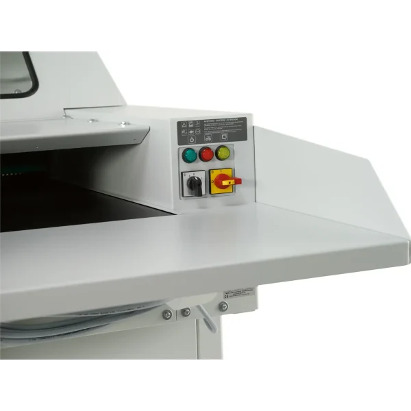 - Gran contenedor móvil situado debajo del mecanismo de corte.